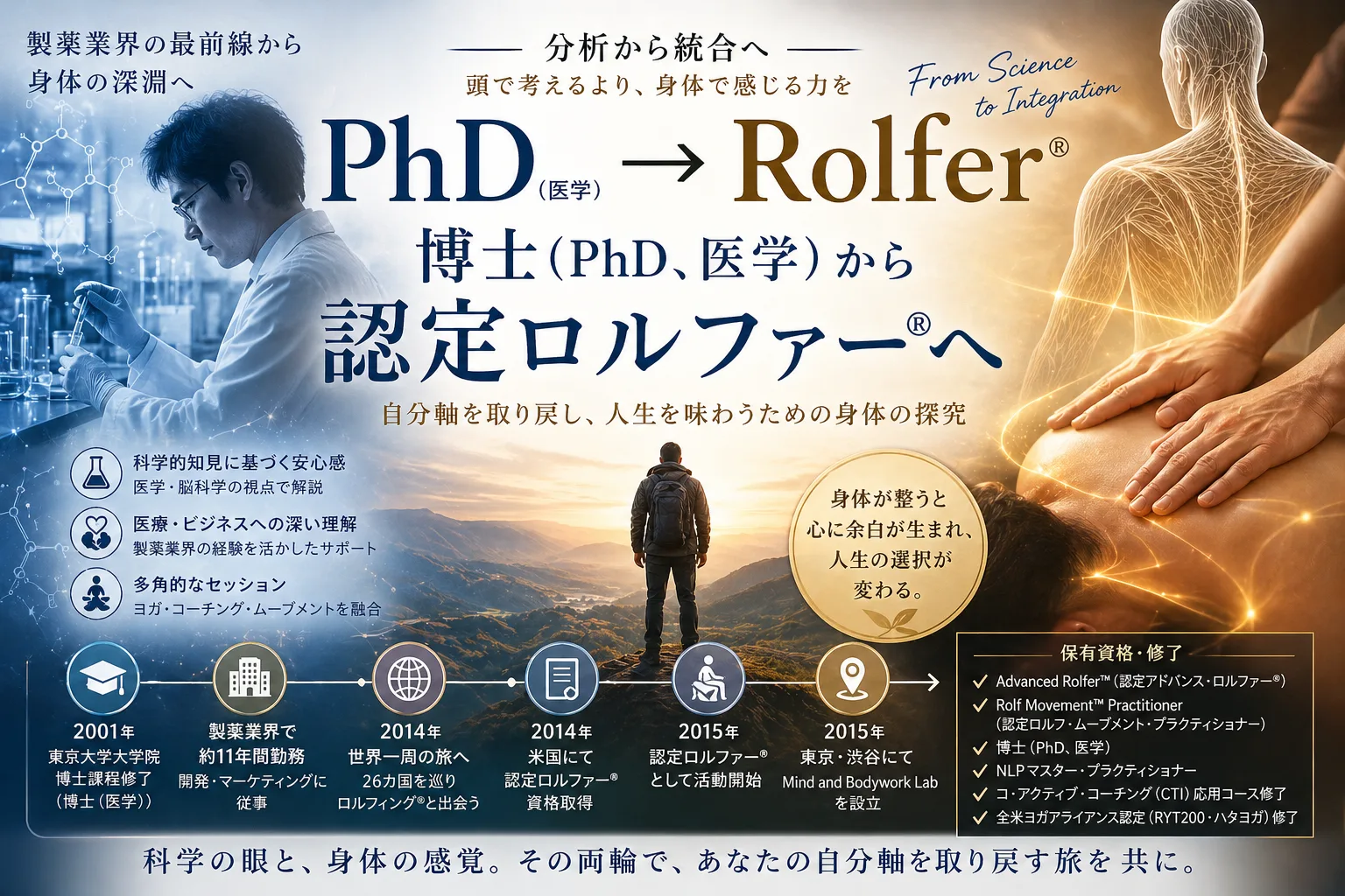 カテゴリ:ロルフィング / 公開:2026年 製薬業界の博士がなぜロルフィングの道を選んだか——その […] -